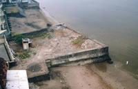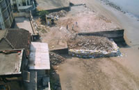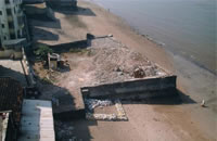 buildings, on the beach front, there is an old retention